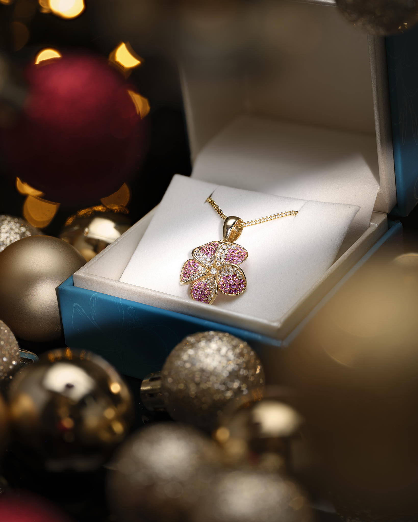 ʻŌhiʻa Lehua Ruby Pendant in Two Tone Gold - 15mm