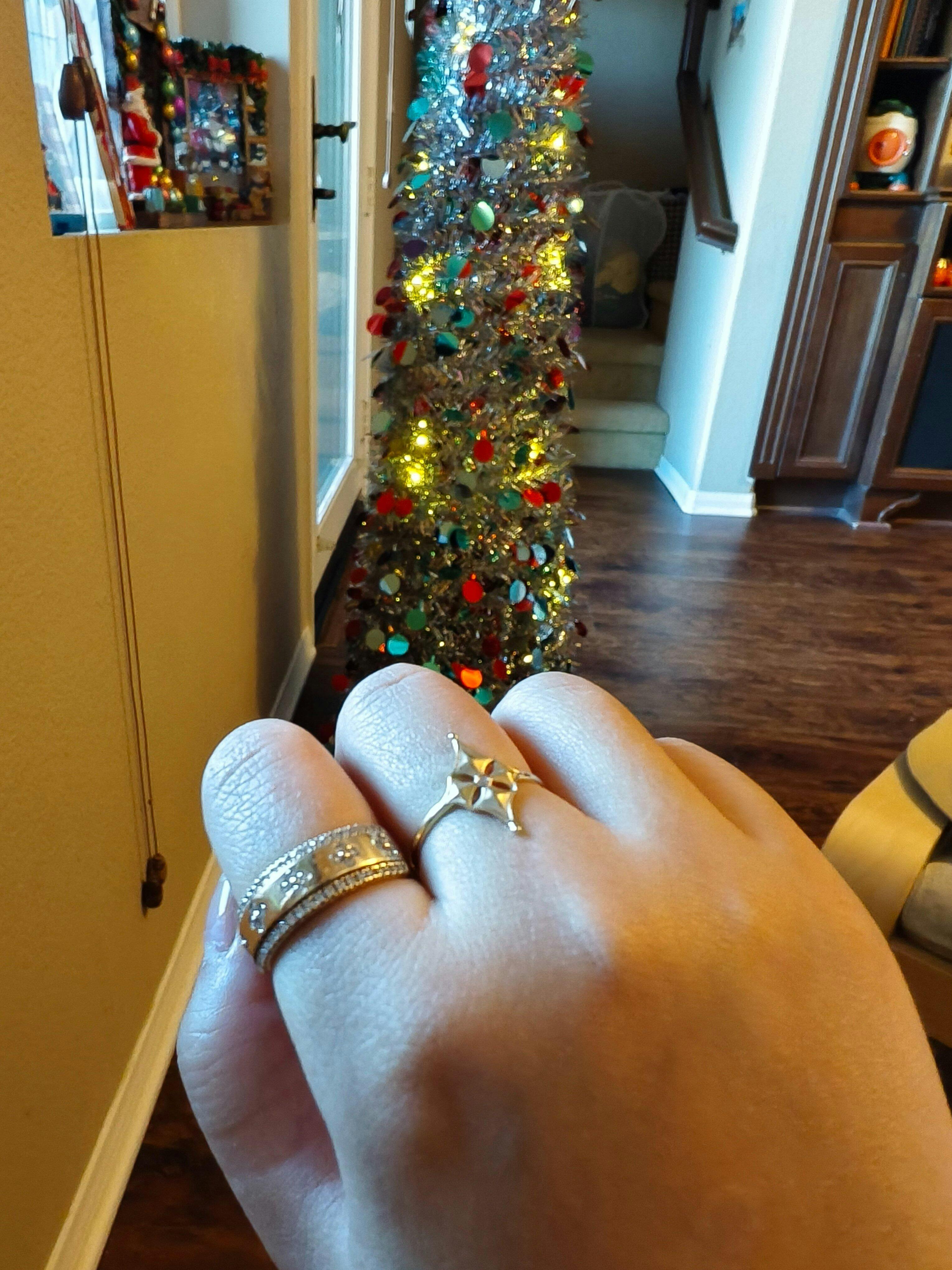 This is a *very beautiful* ring, and fits with my partner's style. It's also prone to catching on materials and like sweaters, shirt sleeves, jackets, etc. So, it may not be a daily wear item.