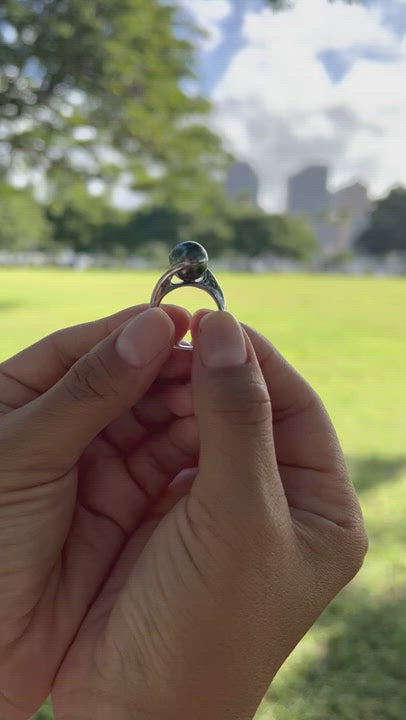 ホワイトゴールドのタヒチアンブラックパールリング-10-11mm