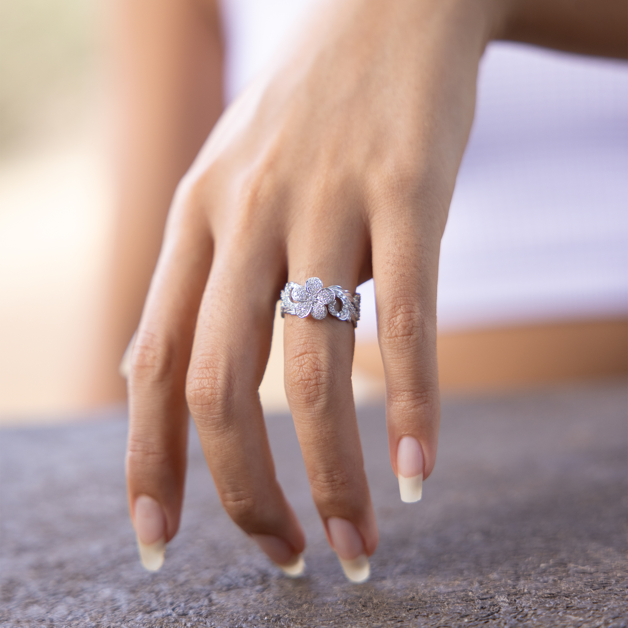 ホワイトゴールドのハワイアンの家宝のプルメリアのリング - 10mm