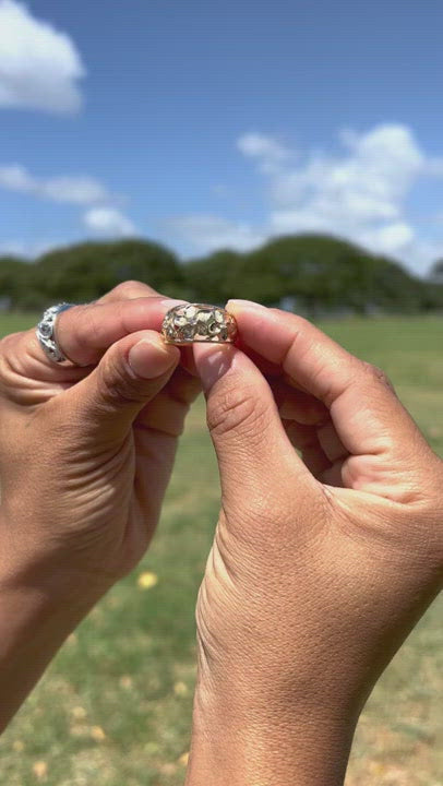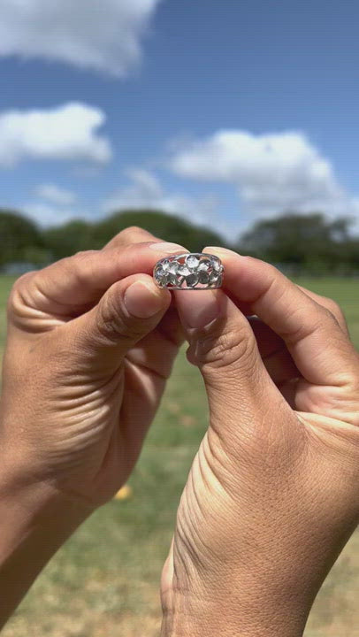 白金のハワイアンの家宝のプルメリアのリングダイヤモンド - 11mm