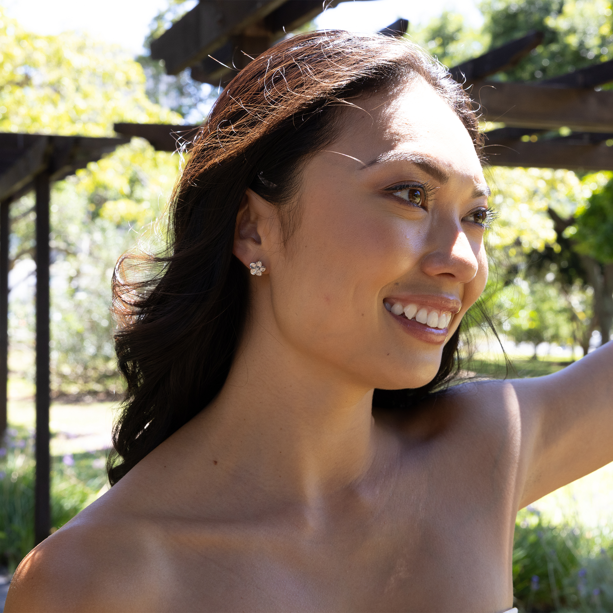 ダイヤモンドと白金のプルメリアイヤリング - 11mm