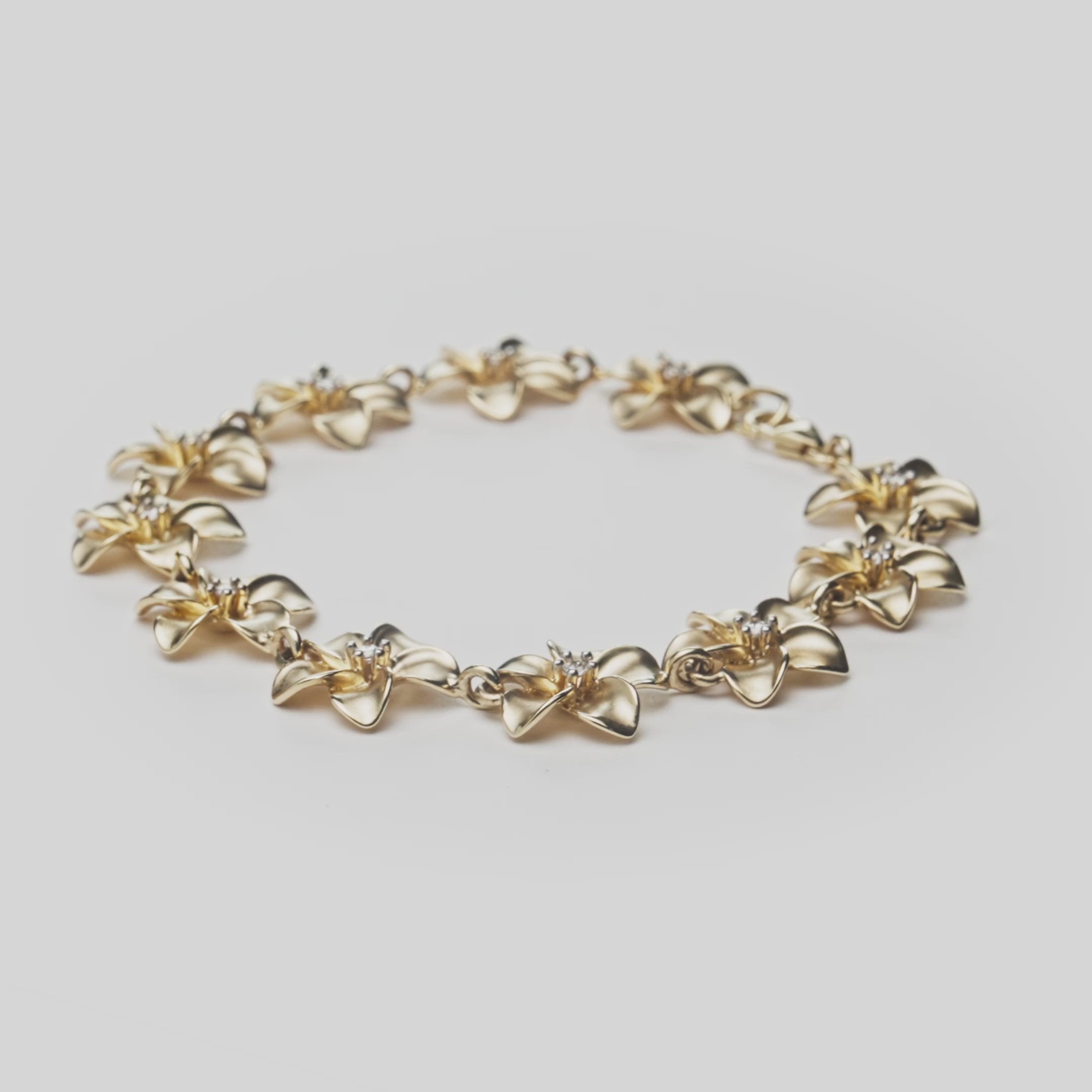 ダイヤモンド付き金のプルメリアブレスレット-13mm-サイズ7.25 "