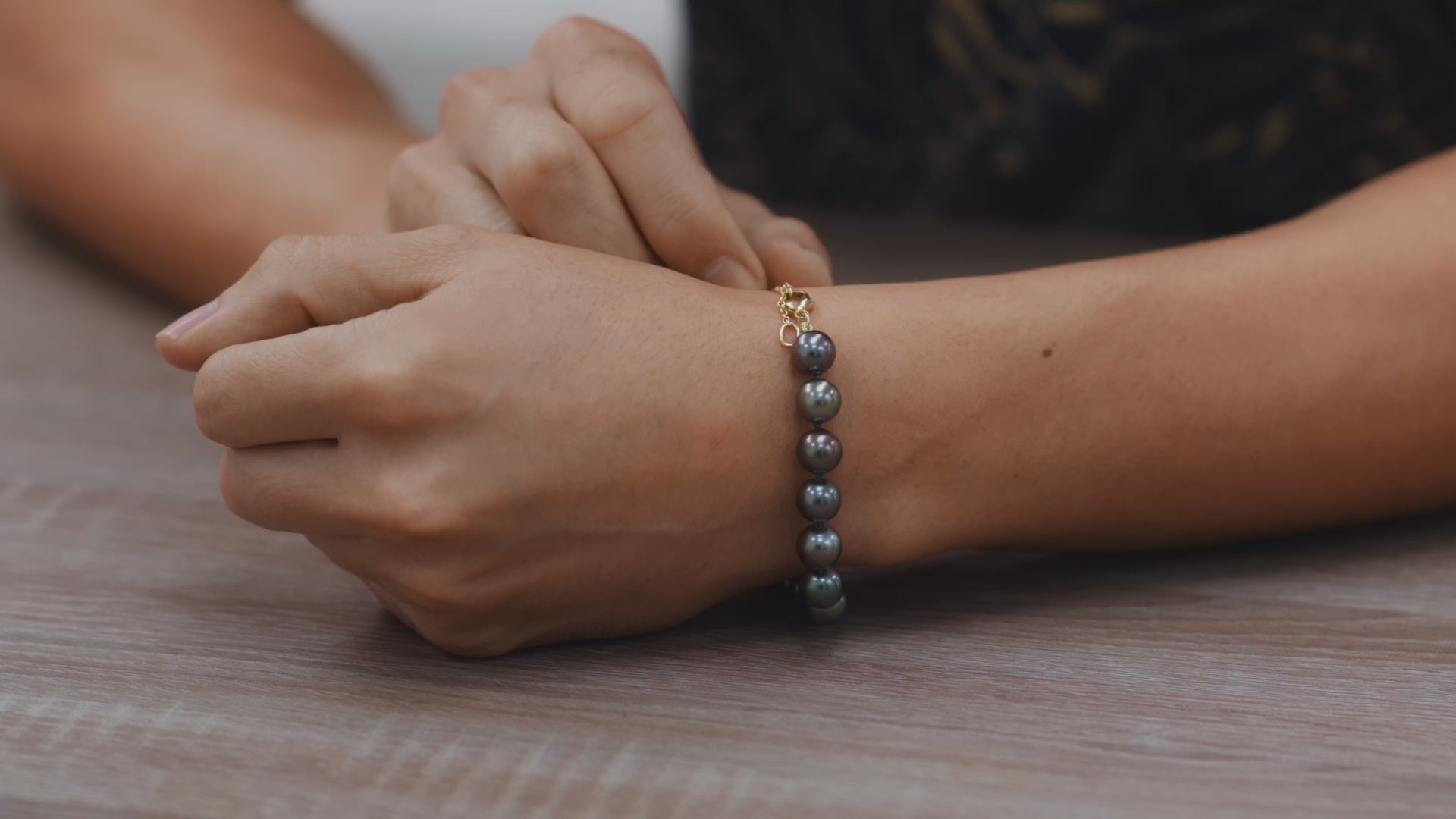 7.5-9" Adjustable Tahitian Black Pearl Bracelet in Gold - 9-10mm