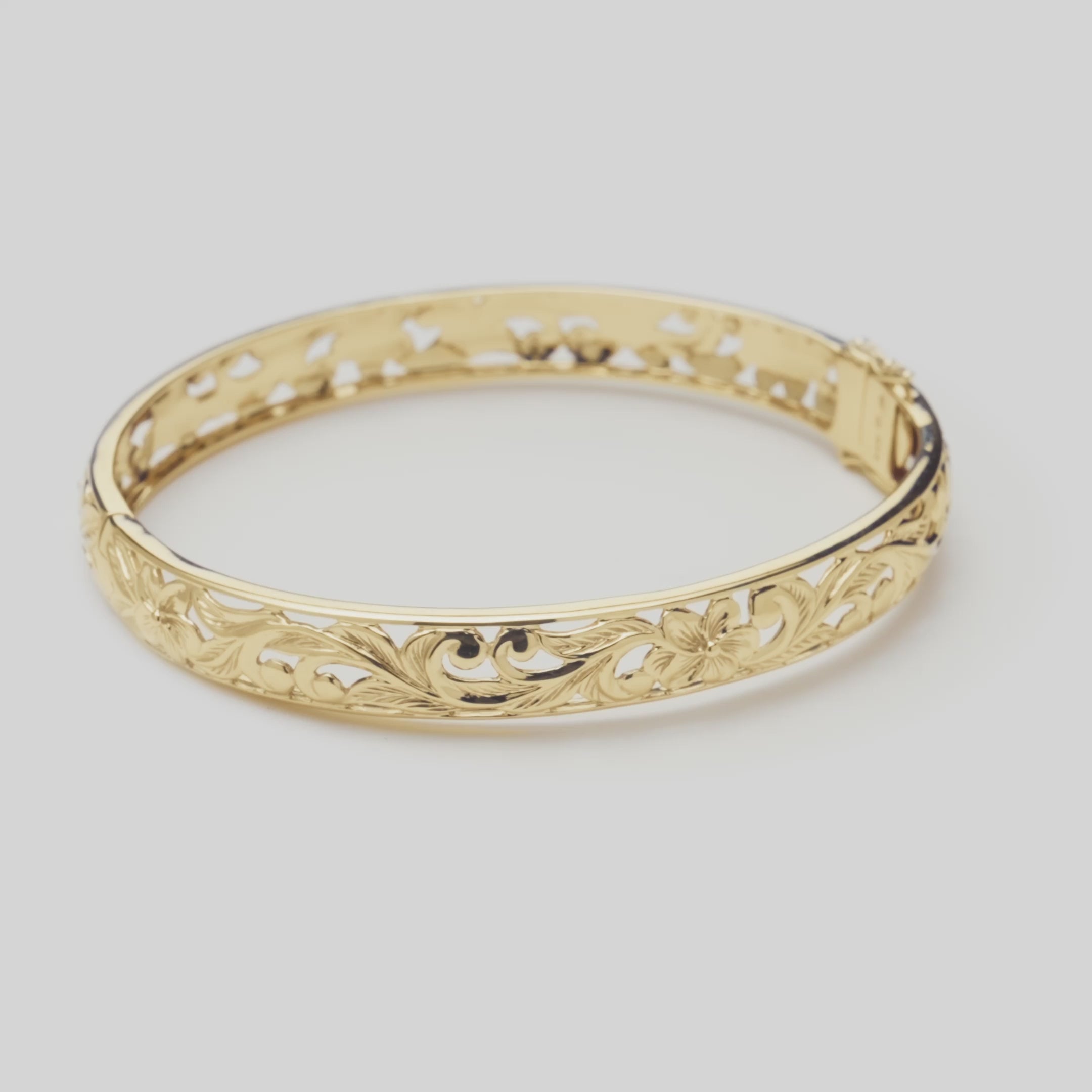 Hawaiian Heirloom Plumeria Hinge Bracelet in Gold - 8mm