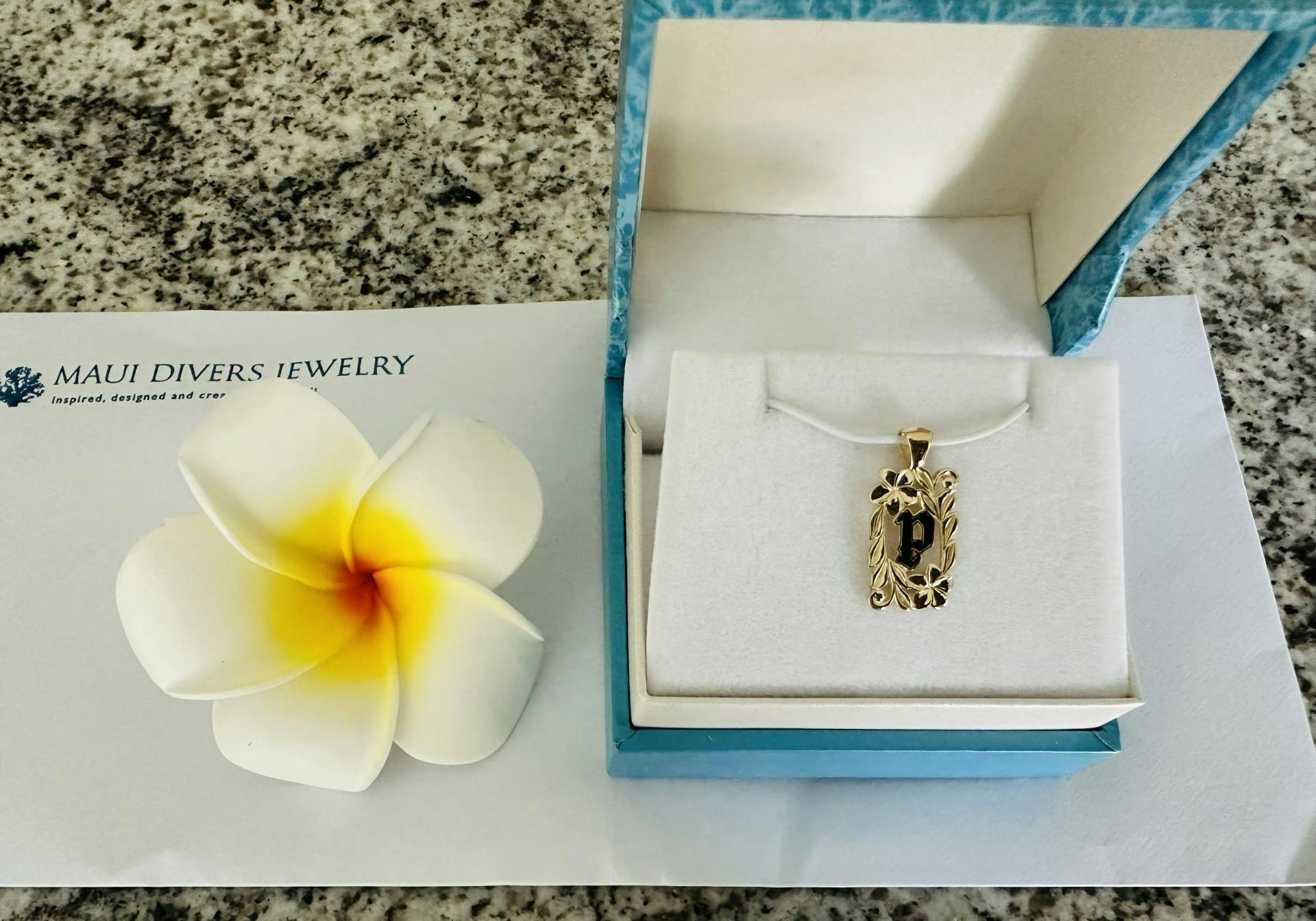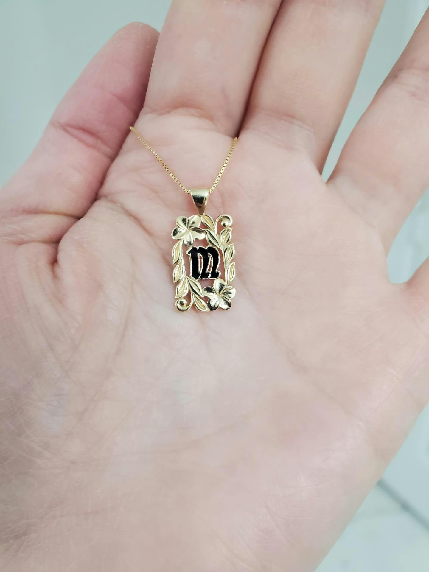 Special Order Hawaiian Heirloom Plumeria Initial Pendant in Gold - 17mm