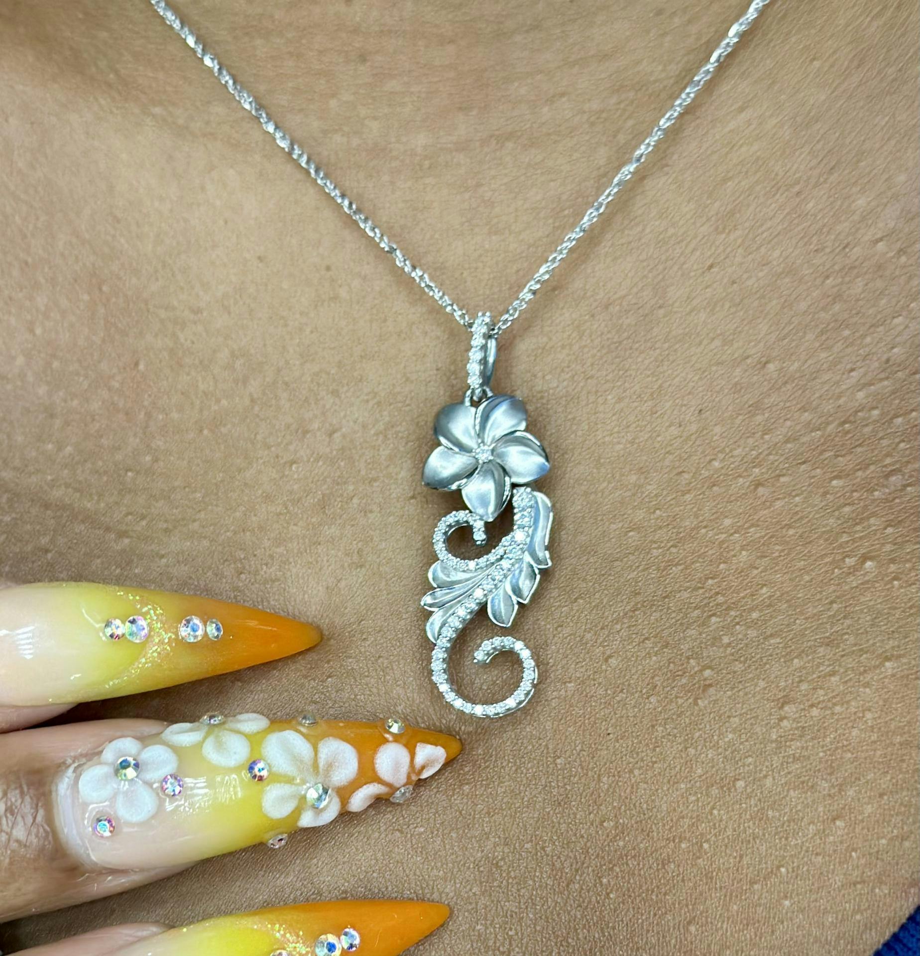 Hawaiian Heirloom Plumeria Pendant in White Gold with Diamonds - 30mm