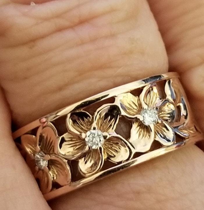 Hawaiian Heirloom Plumeria Ring in Gold with Diamonds - 8mm