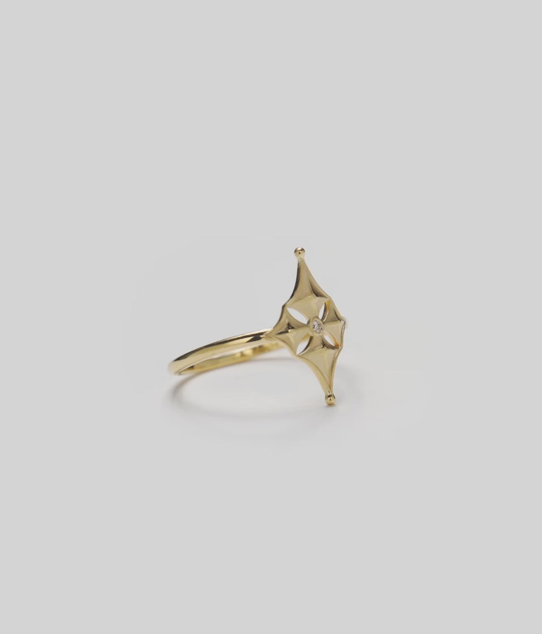 Hawaiian Quilted Star Ring in Gold with Diamond - 16mm