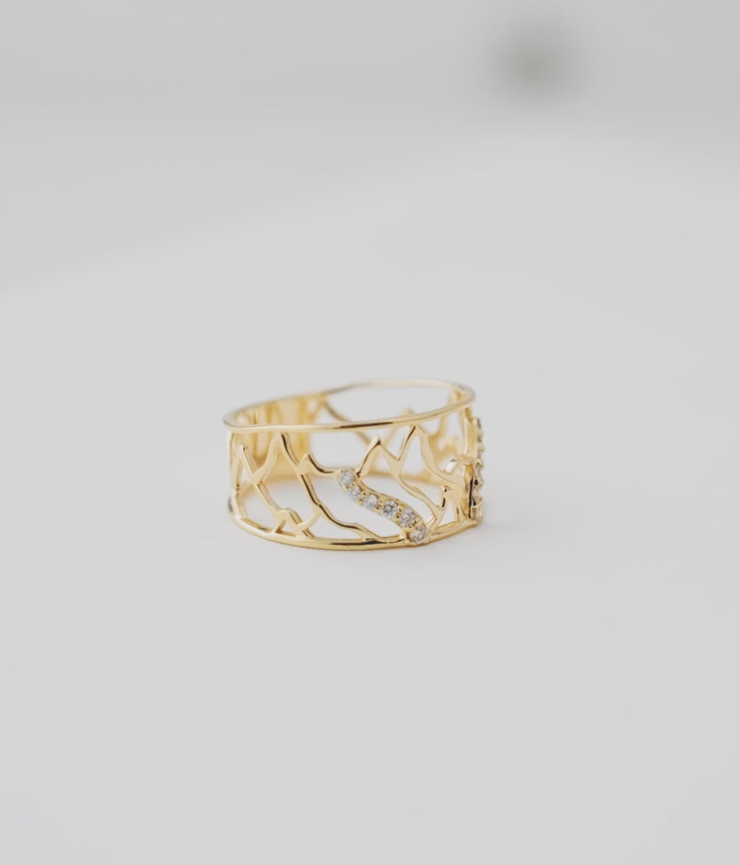 Koʻolau Waterfall Ring in Gold with Diamonds - 10mm