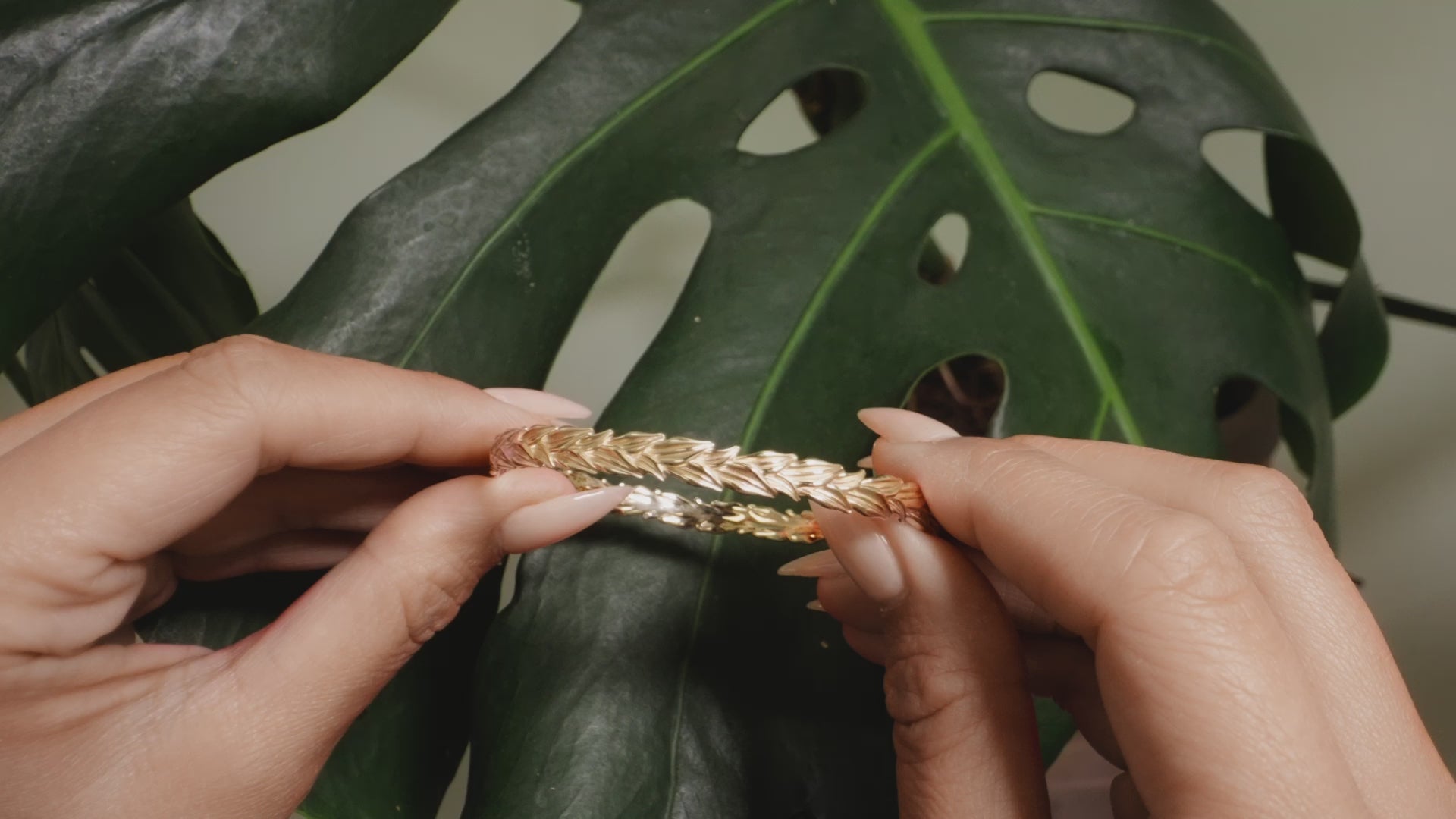 Maile is a fragrant native vine that grows in remote regions of Hawaiian rainforests. Its vines are picked and carefully intertwined to create long open-ended lei. The twisting of the vines symbolizes unity between loved ones and is worn at weddings, graduations, and special occasions. Commemorate your stories of Aloha (Love), Ho‘ohanohano (Honor), and respect with our Maile Collection.