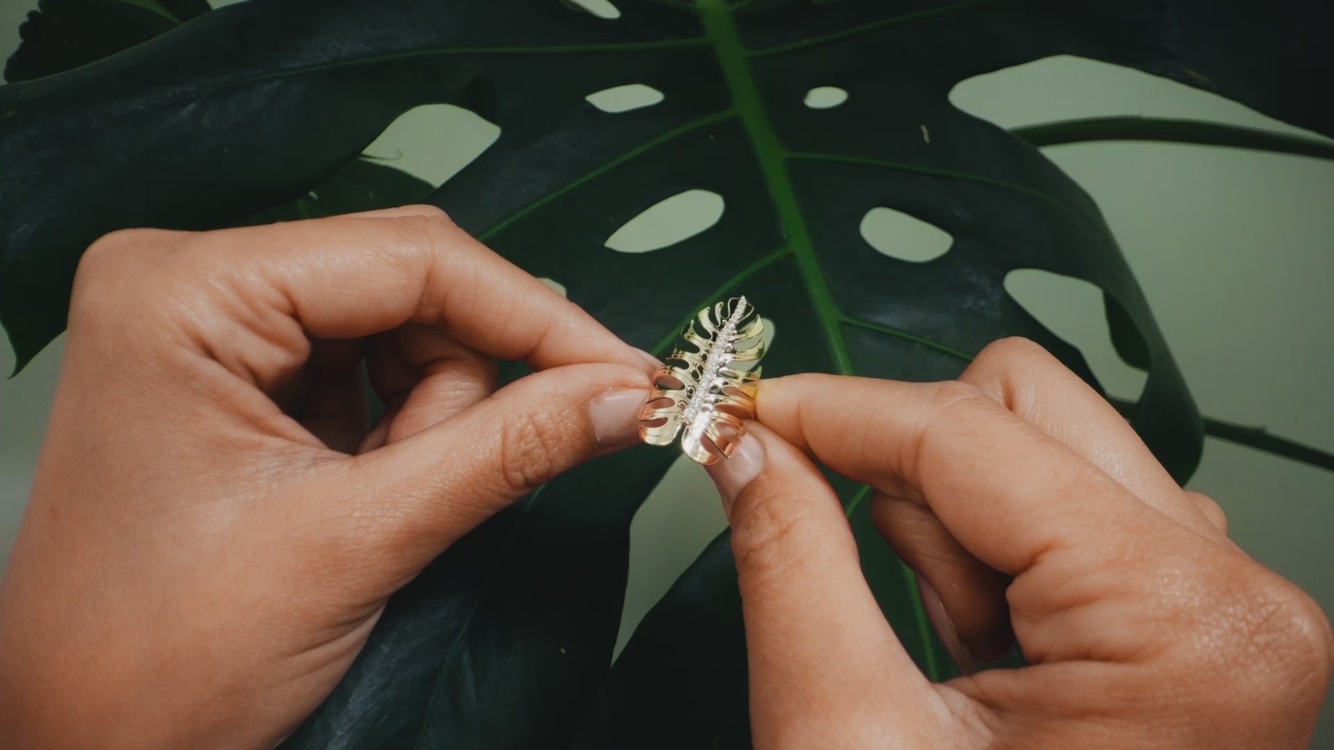 Monstera Ring in Gold with Diamonds - 32mm
