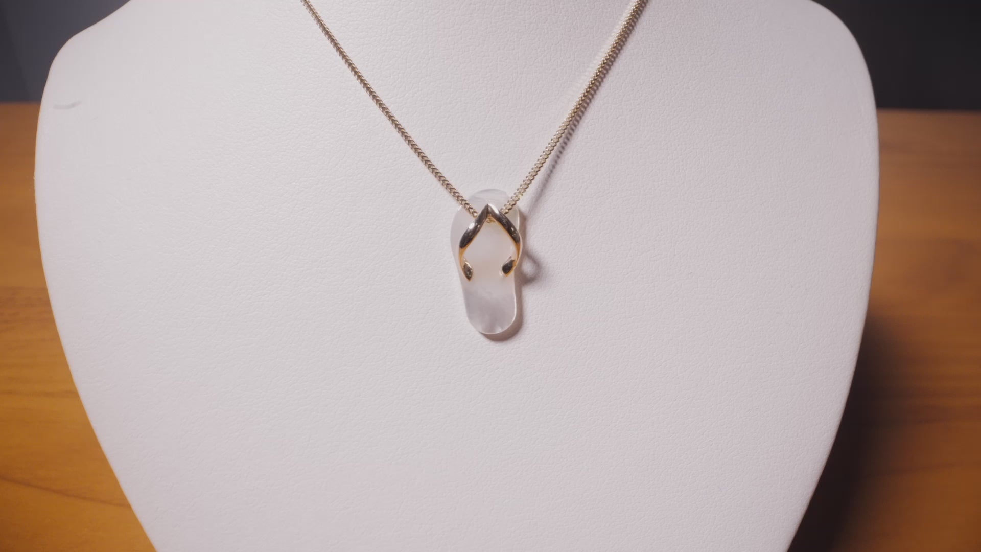 White Mother of Pearl Slipper Pendant in Gold - 19mm