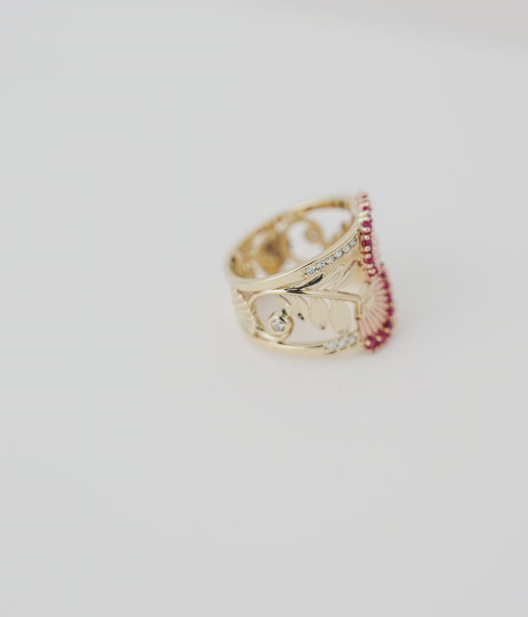 ʻŌhiʻa Lehua Ruby Ring in Two Tone Gold with Diamonds