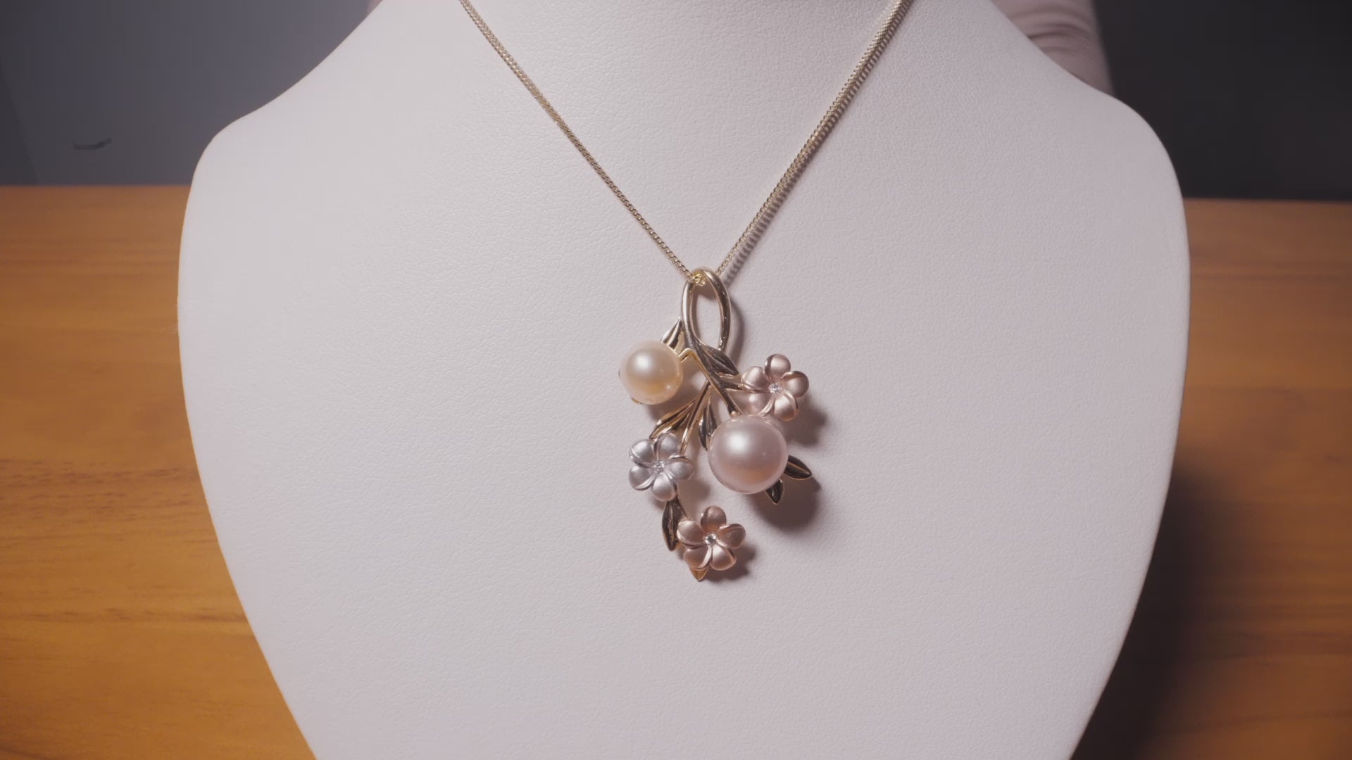 Pearls in Bloom Plumeria Freshwater Pearl Pendant in Tri Color Gold with Diamonds - 36mm