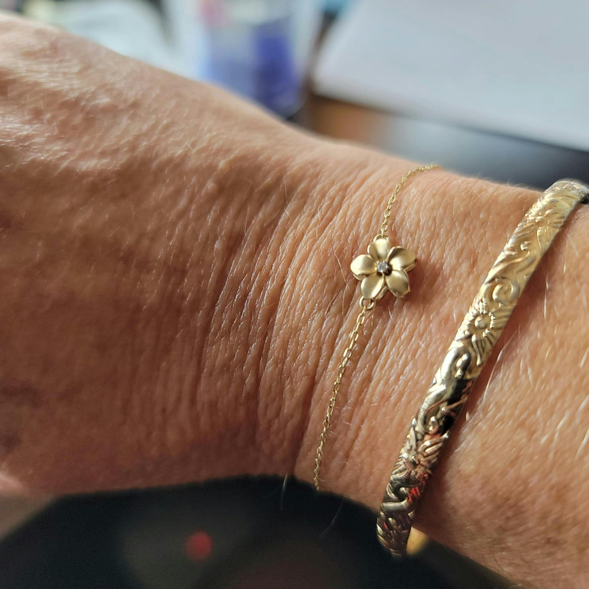 Adjustable 7-7.5" Plumeria Bracelet in Gold with Diamond - 9mm
