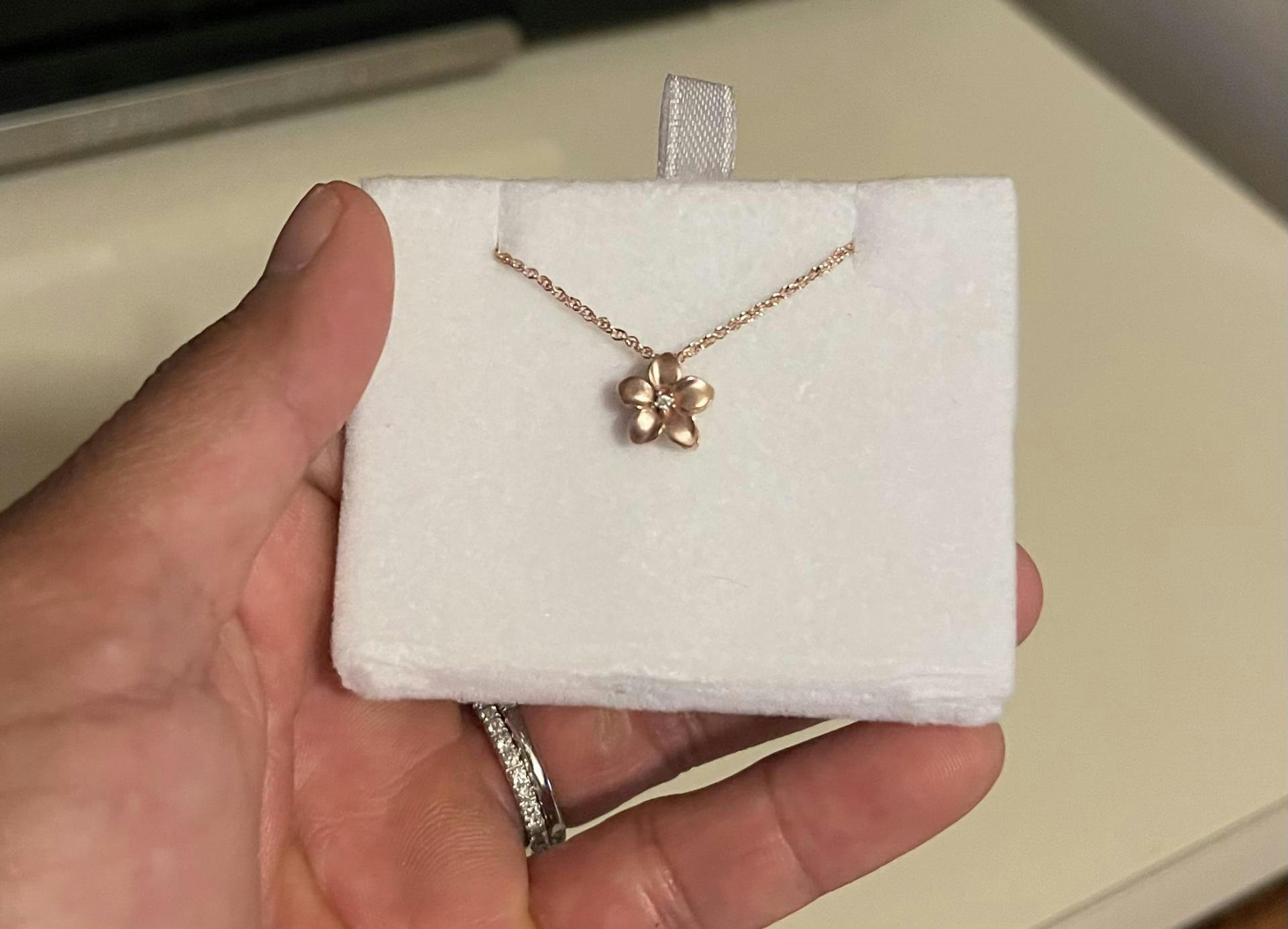 Plumeria Pendant in Rose Gold with Diamond - 9mm
