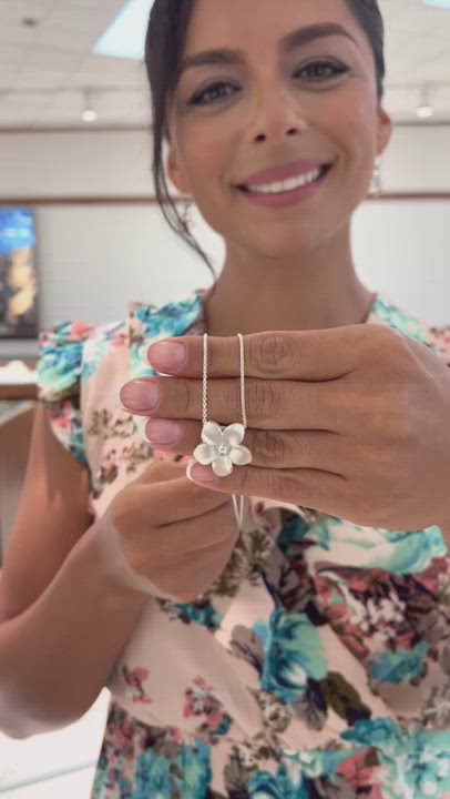 24" Adjustable Plumeria White Sapphire Necklace in Sterling Silver - 20mm