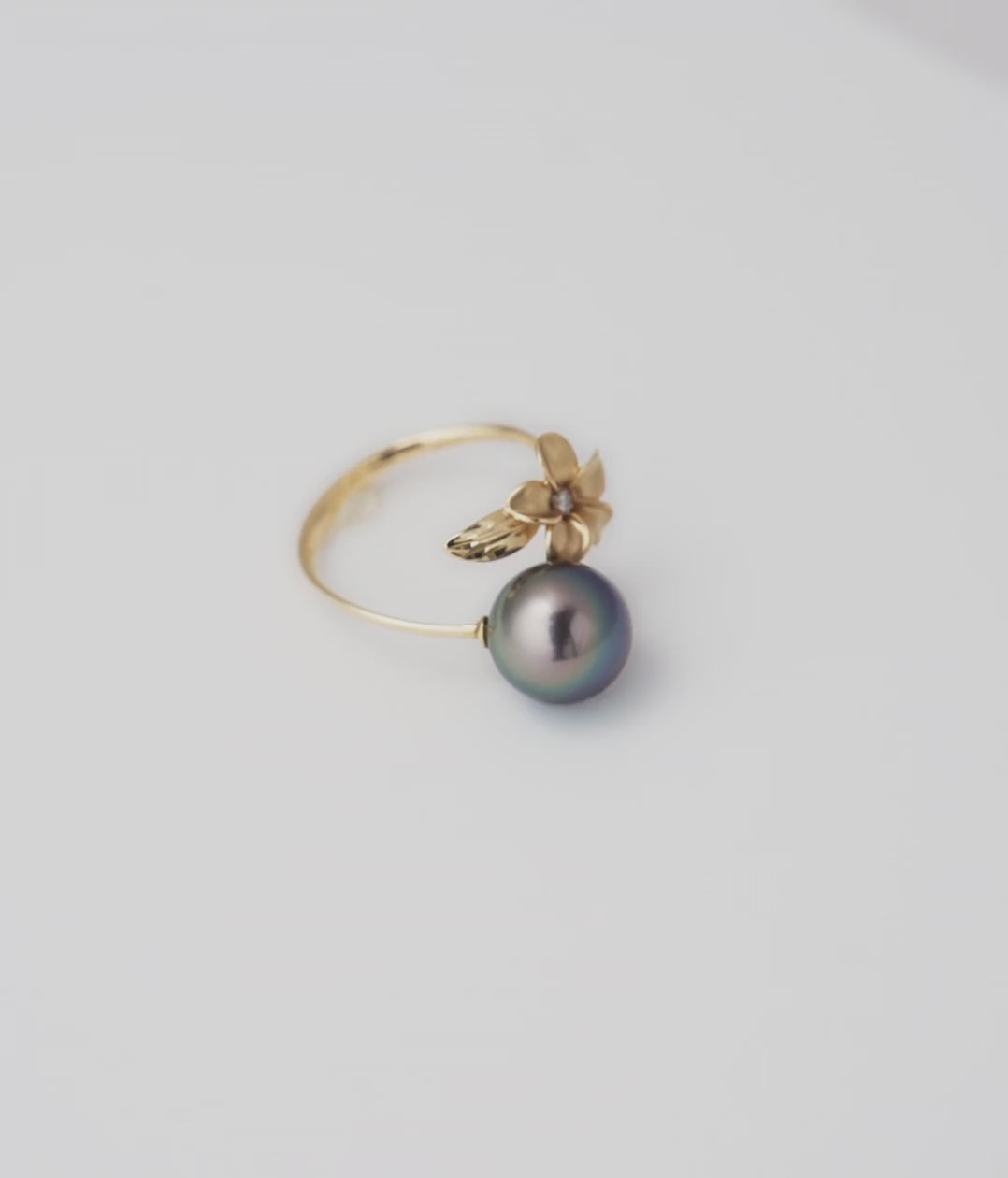 Plumeria Tahitian Black Pearl Ring in Gold with Diamond - 9mm