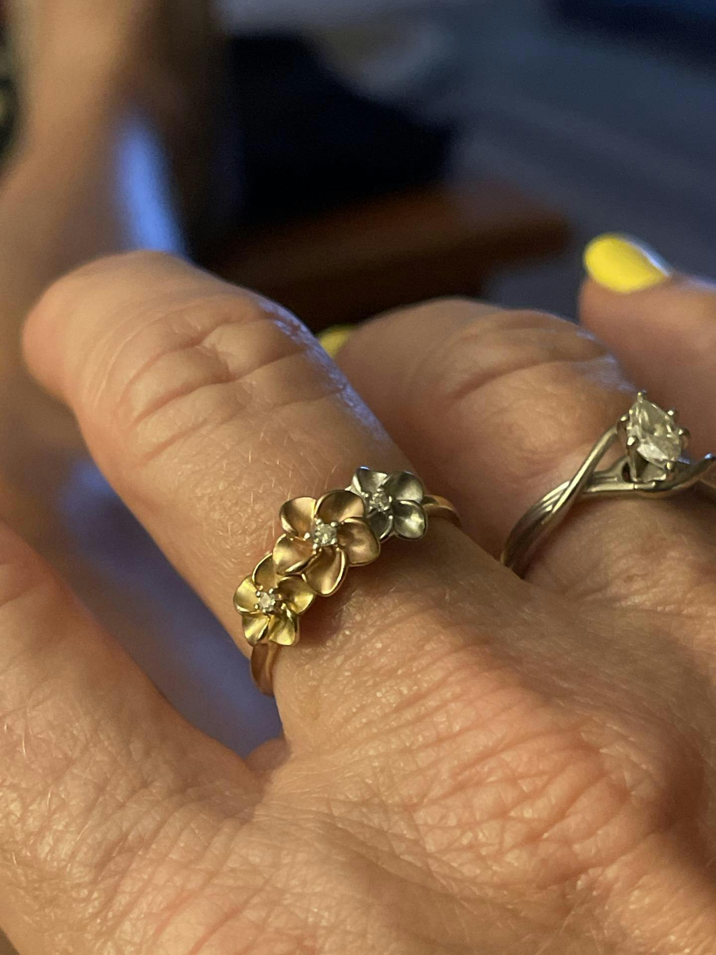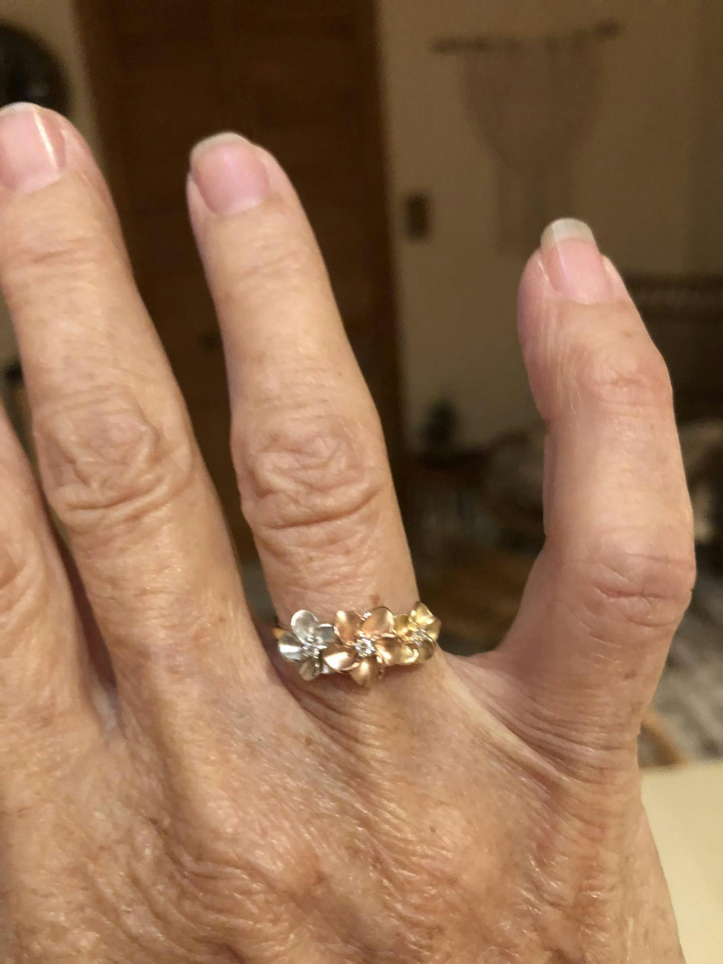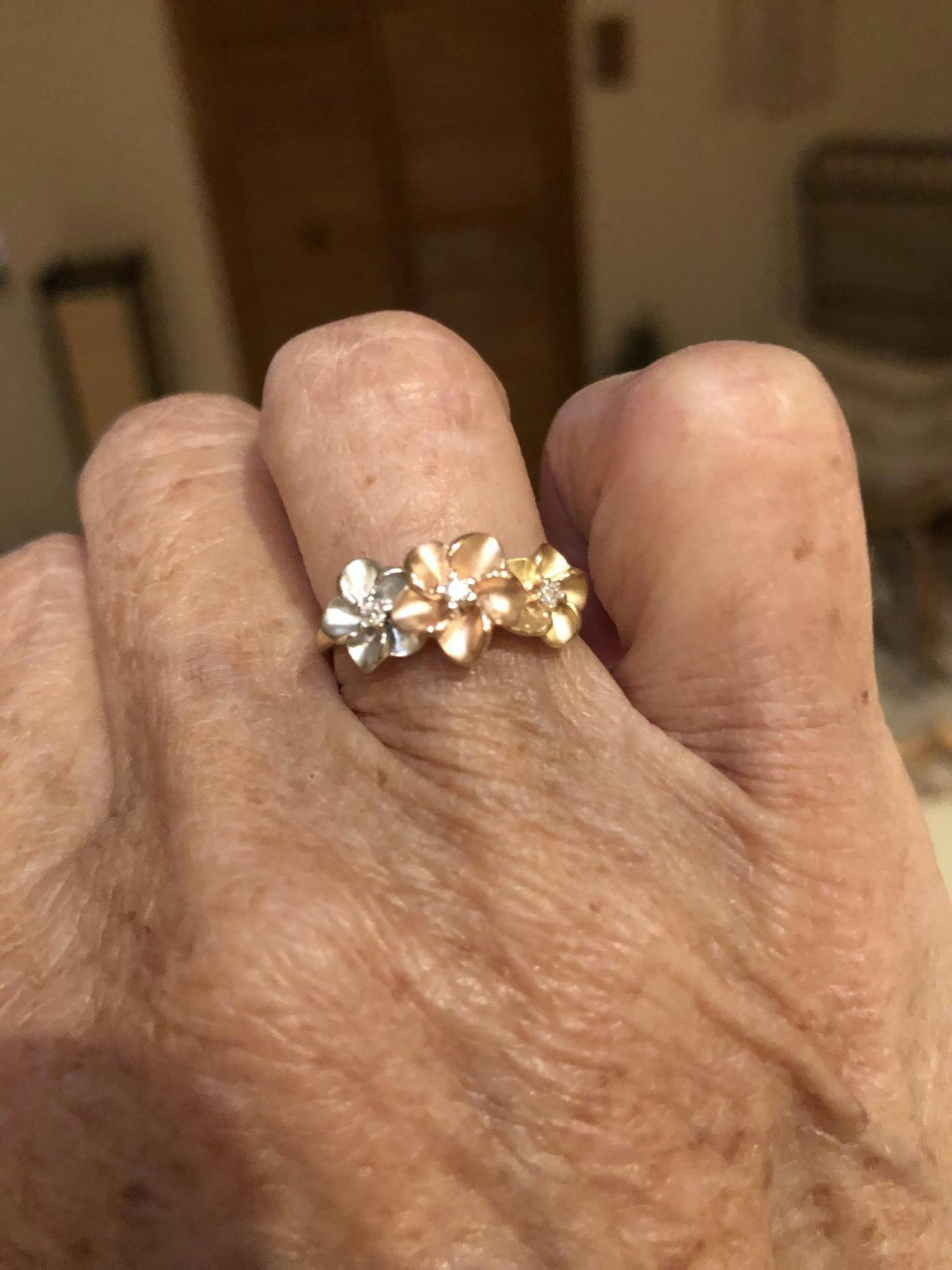 Plumeria Ring in Tri Color Gold with Diamonds - 8mm