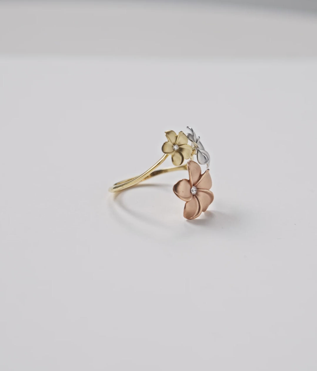 Plumeria Ring in Tri Color Gold with Diamonds - 12mm