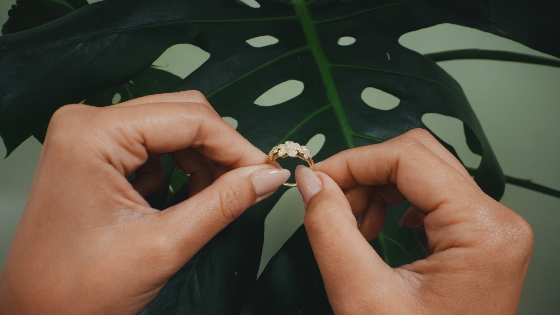 Plumeria Ring in Gold with Diamonds - 10mm