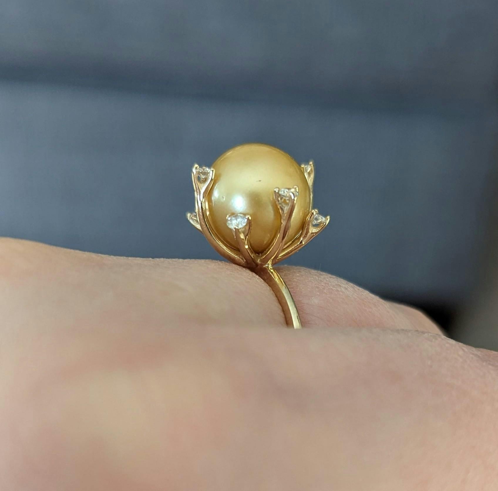 Protea South Sea Gold Pearl Ring in Gold with Diamonds - 10-11mm