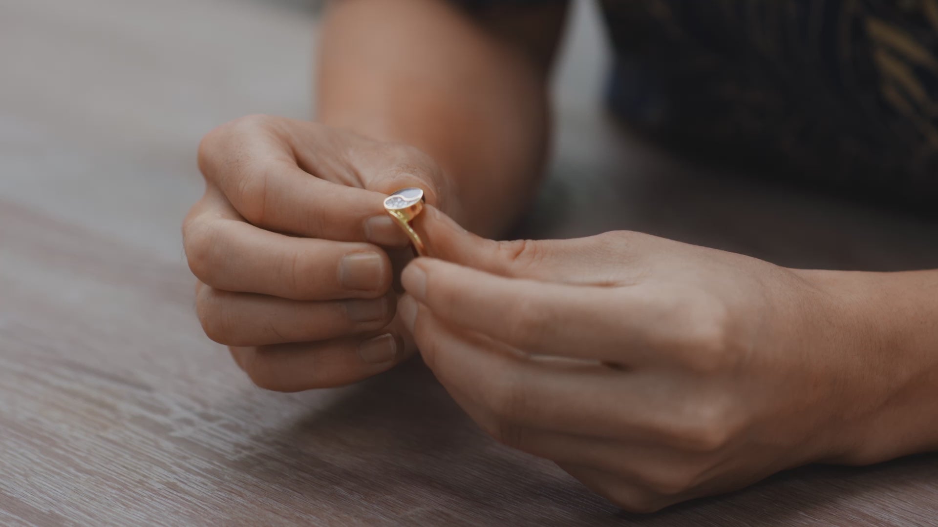 Yin Yang Black Coral Ring in Gold with Diamonds - 12mm